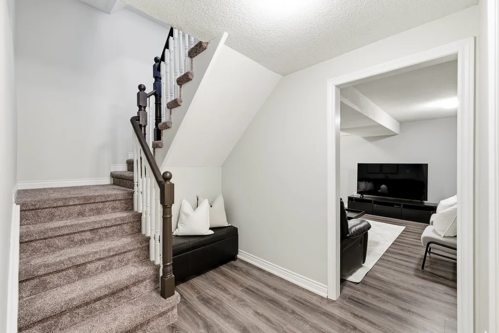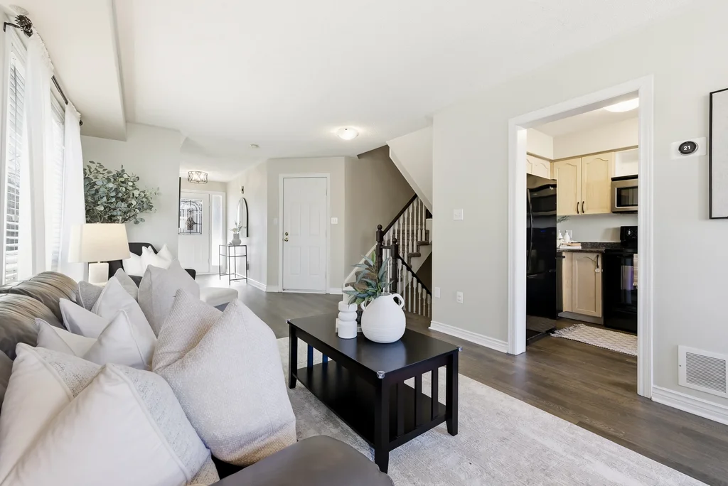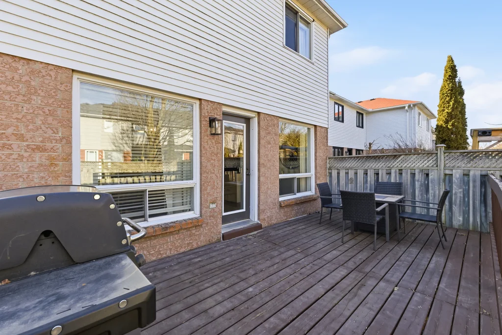 Welcome to Brownstone Crescent - this beautifully maintained end-unit townhome boasts what others can't. With nearly 1,400 sq ft above grade, a 4th bathroom, home-access to the built-in garage, plus a fully finished basement. Conveniently located on a quiet, family-friendly neighbourhood in Courtice. The main floor showcases newly re-finished hardwood floors, plenty of windows, creating a bright and welcoming atmosphere and a rear walk-out to the private backyard. Upon entering the foyer you'll find a closet, a 2-pc bathroom, and the convenience of direct access to the 1-car garage. Enjoy open-concept main floor with large windows offers natural light in the family room and dining rooms, making it ideal for entertaining. The eat-in kitchen features Whirlpool and Bosch appliances, hardwood flooring, a breakfast bar, and a bay window shining even more natural light into the space. The second storey provides newer carpeted floors in the three generously sized bedrooms, along with two full 4-piece bathrooms. The primary bedroom includes a double-wide closet and private 4-pc ensuite, while the additional 2 bedrooms are perfect for children, guests, or a home office. The professionally finished basement adds valuable living space with a cozy den complete with gas fireplace, a second 2-piece bathroom, and a dedicated laundry/utility area- all ideal for convenience and relaxation, working from home or hosting guests. This home is perfectly positioned close to highly regarded schools, everyday shopping amenities, and excellent commuter access. Enjoy nearby green spaces including Glenabbey and Stuart Parks, with the Courtice Community Complex just minutes away. Commuters will appreciate the quick access to Highways 401 and 407, as well as proximity to the Oshawa GO Station. This move-in-ready end unit offers space, comfort, and an unbeatable location for families and professionals alike.