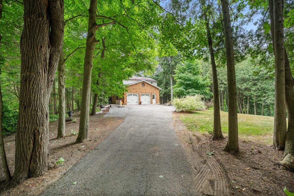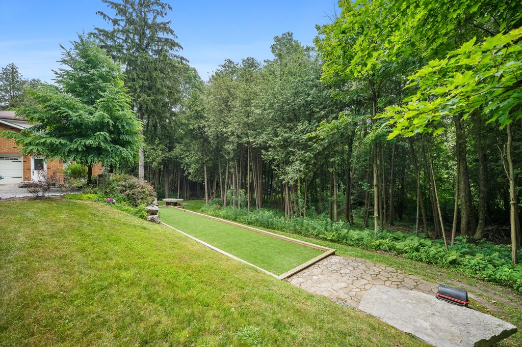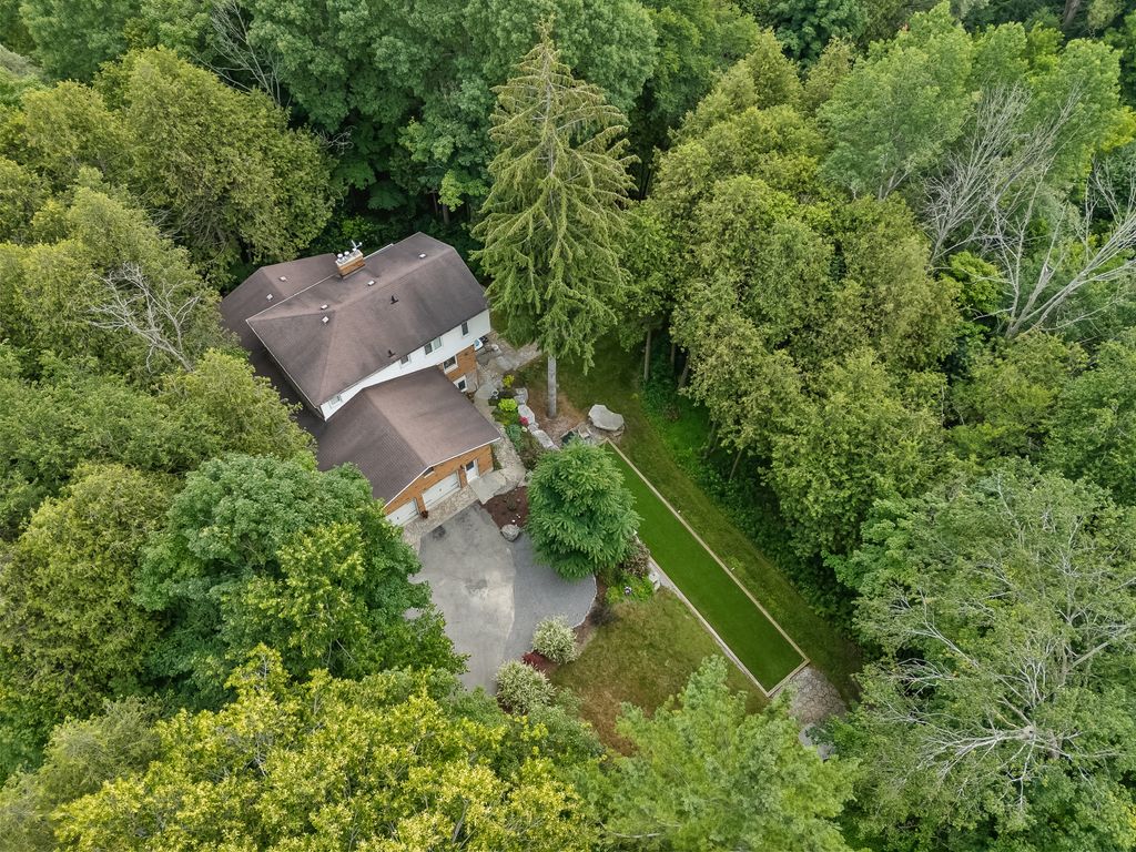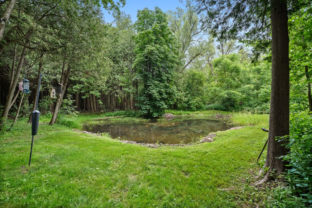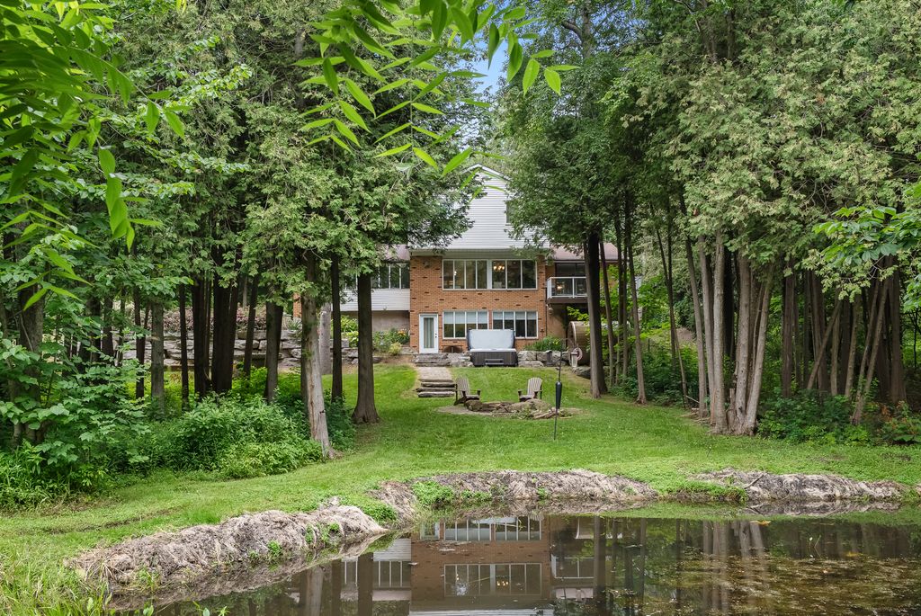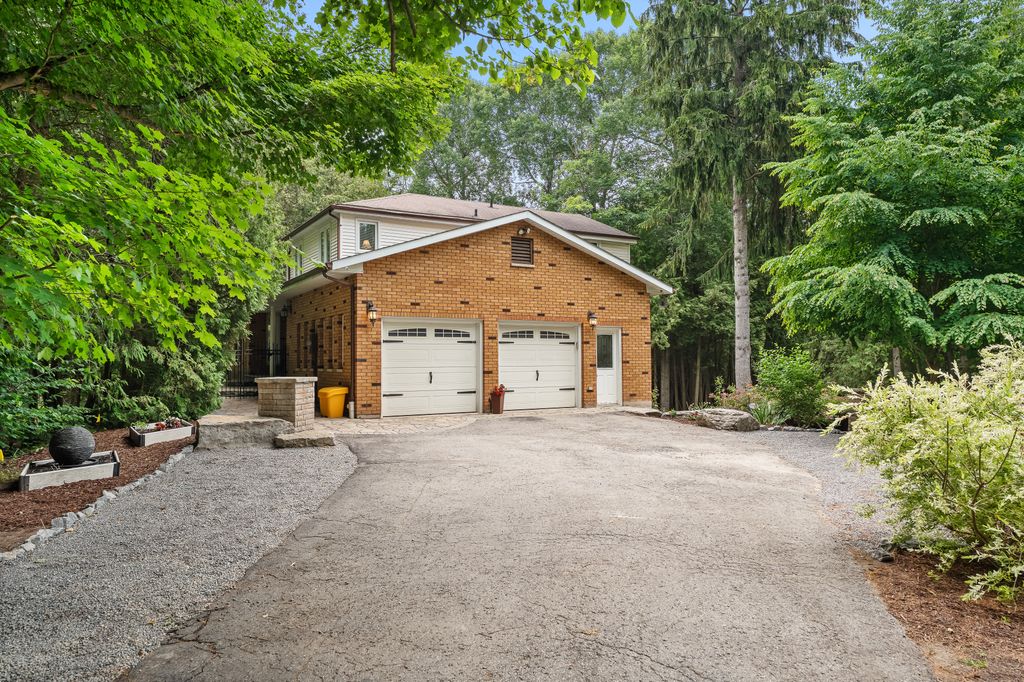 Welcome to your private sanctuary designed for those seeking serenity without sacrifice. Tucked away on a quiet court and set on 4 wooded acres, this 5 bedroom, 3 bathroom home offers over 3,000 sq/ft of total living space, delivering the best of both worlds: complete privacy and quick access to downtown Bowmanville.The property is a true outdoor oasis; wander through the forest along a winding stream, relax beside a peaceful pond, unwind in the sauna, or enjoy the hot tub under the stars. A fully fenced half-acre dog run keeps your furry companions happy and safe. For those who love entertaining or peaceful solitude, this space is unparalleled. Even a perfectly manicured bocce green adds a unique touch rarely found. Inside, the home is equally as impressive. The main floor welcomes you with a wonderful flow and thoughtful layout. Walkout from both the living room and kitchen area to a private deck with spectacular views of the pond and nature's bounty. A main floor bedroom and 3-piece bath allow for flexible living arrangements. Up the beautiful maple staircase awaits a traditional second floor with 3 bedrooms and 2 bathrooms. The expansive primary suite features a walk-in closet and a spacious ensuite bath, offering a private retreat within the home. The walkout lower level leads directly to the hot tub and sauna area: perfect for year-round enjoyment and seamless indoor-outdoor living. It also features a large 5th bedroom with walk-in closet. The layout provides ample space for a growing family, multi-generational living, or hosting guests. With an attached oversized 2-car garage, you're ensured both an abundance of storage and convenience. Whether you're enjoying quiet mornings with coffee on the deck or spending evenings in the hot tub surrounded by nature, this home provides the peace you deserve. Located just minutes from downtown Bowmanville, you're close to schools, shops, dining, and highway access yet a world away from it all. Welcome home!