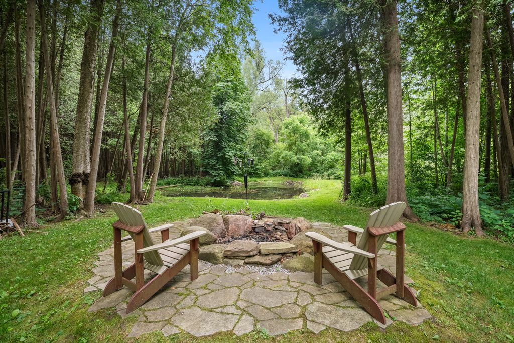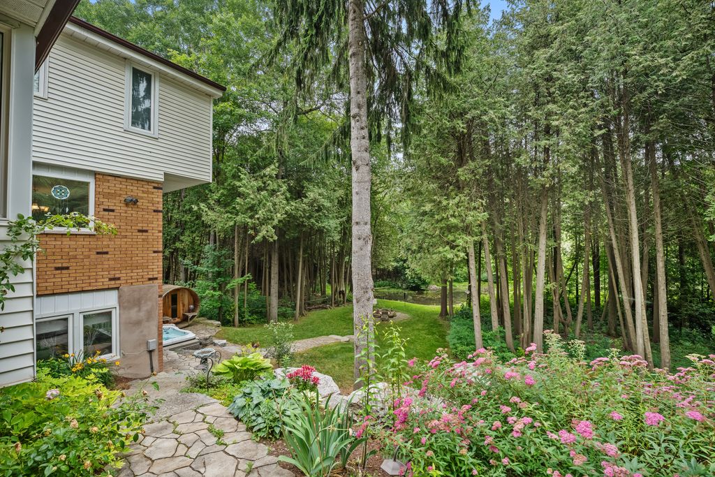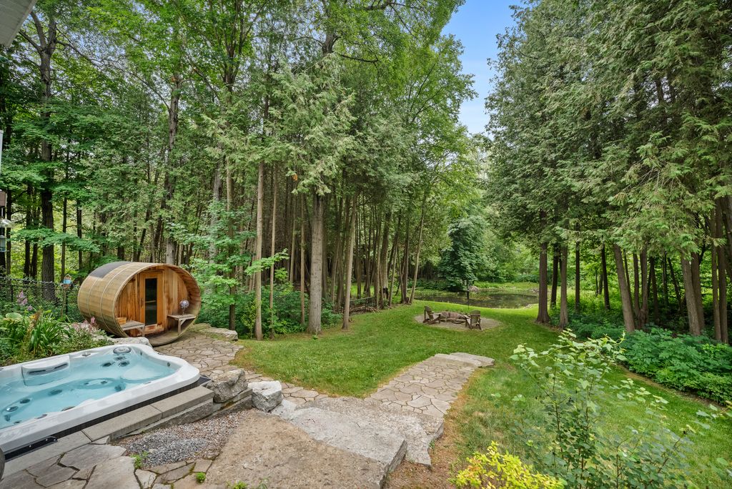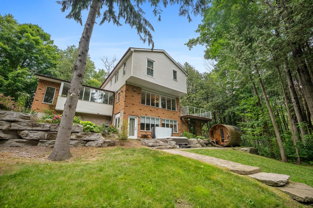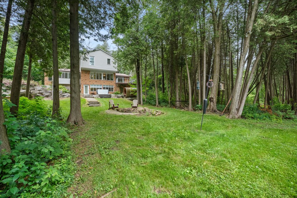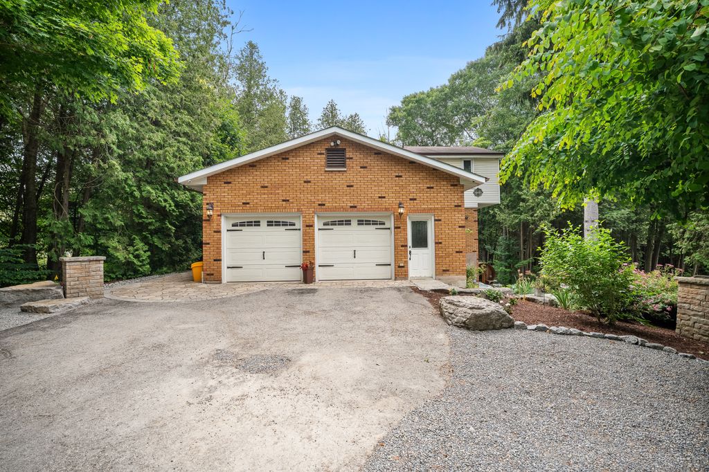 Welcome to your private sanctuary designed for those seeking serenity without sacrifice. Tucked away on a quiet court and set on 4 wooded acres, this 5 bedroom, 3 bathroom home offers over 3,000 sq/ft of total living space, delivering the best of both worlds: complete privacy and quick access to downtown Bowmanville.The property is a true outdoor oasis; wander through the forest along a winding stream, relax beside a peaceful pond, unwind in the sauna, or enjoy the hot tub under the stars. A fully fenced half-acre dog run keeps your furry companions happy and safe. For those who love entertaining or peaceful solitude, this space is unparalleled. Even a perfectly manicured bocce green adds a unique touch rarely found. Inside, the home is equally as impressive. The main floor welcomes you with a wonderful flow and thoughtful layout. Walkout from both the living room and kitchen area to a private deck with spectacular views of the pond and nature's bounty. A main floor bedroom and 3-piece bath allow for flexible living arrangements. Up the beautiful maple staircase awaits a traditional second floor with 3 bedrooms and 2 bathrooms. The expansive primary suite features a walk-in closet and a spacious ensuite bath, offering a private retreat within the home. The walkout lower level leads directly to the hot tub and sauna area: perfect for year-round enjoyment and seamless indoor-outdoor living. It also features a large 5th bedroom with walk-in closet. The layout provides ample space for a growing family, multi-generational living, or hosting guests. With an attached oversized 2-car garage, you're ensured both an abundance of storage and convenience. Whether you're enjoying quiet mornings with coffee on the deck or spending evenings in the hot tub surrounded by nature, this home provides the peace you deserve. Located just minutes from downtown Bowmanville, you're close to schools, shops, dining, and highway access yet a world away from it all. Welcome home!