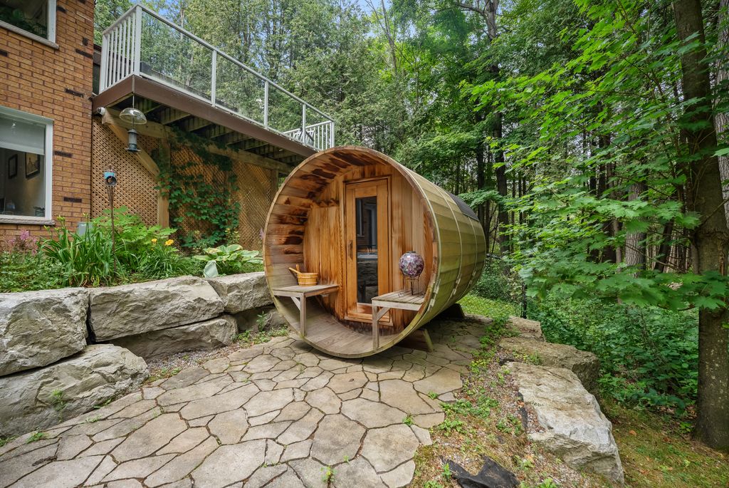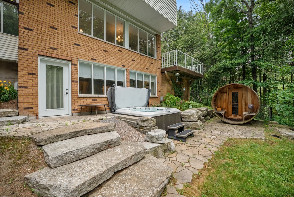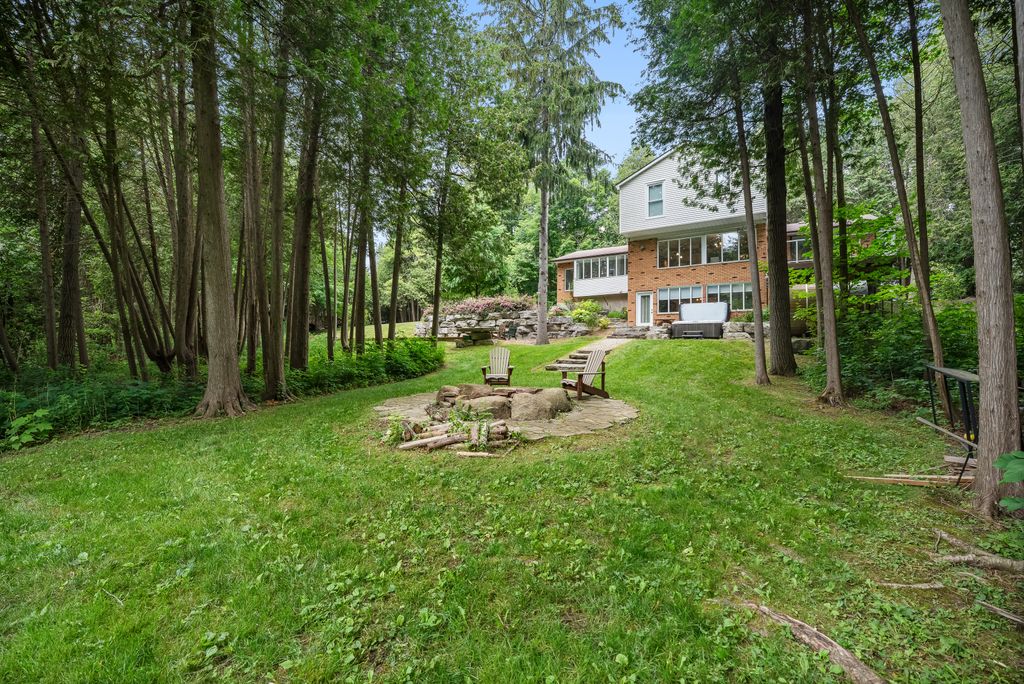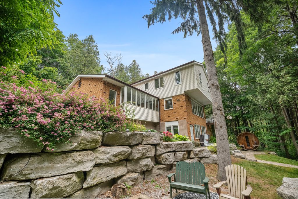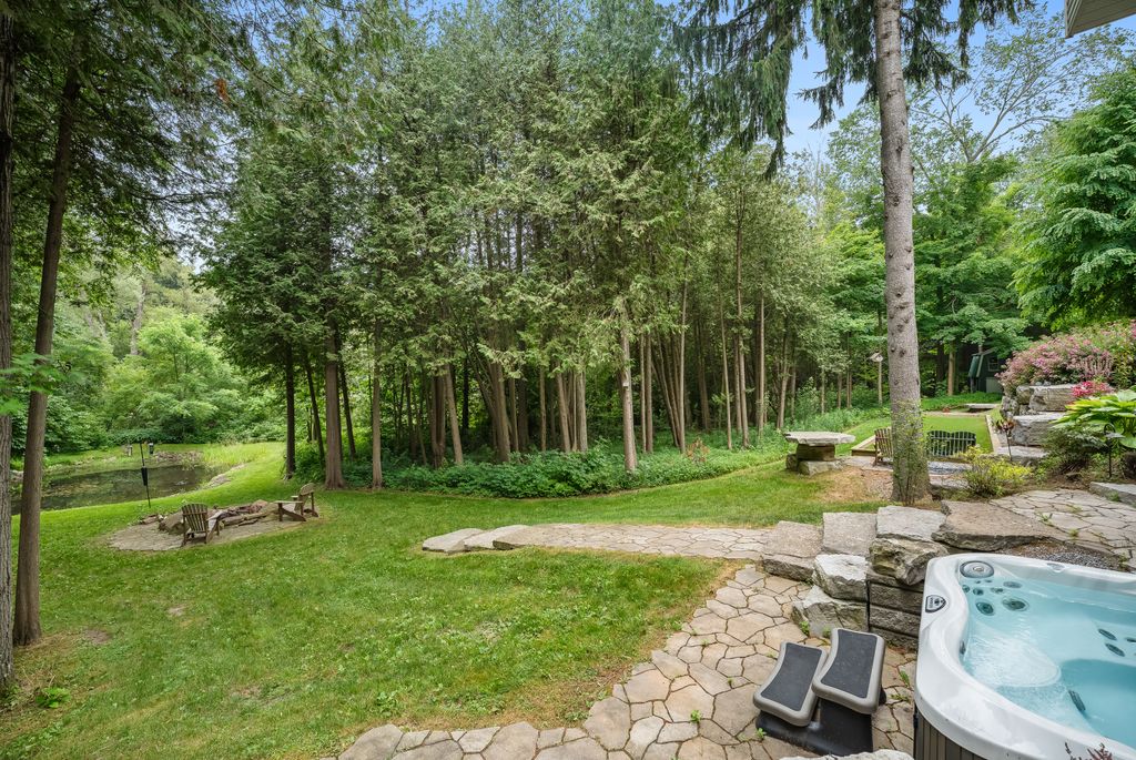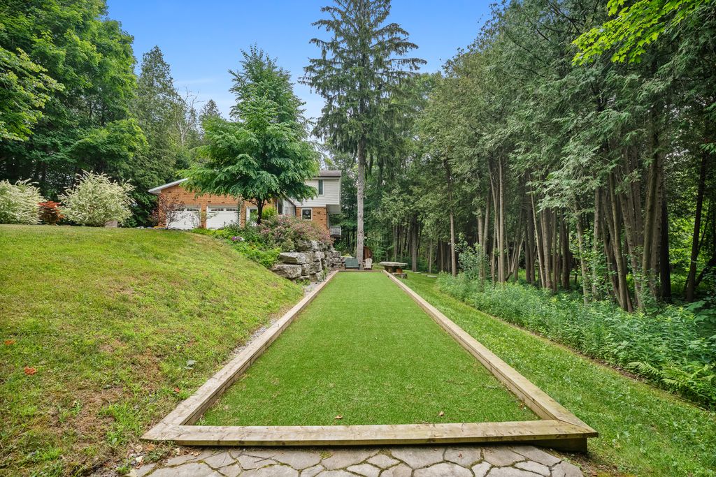 Welcome to your private sanctuary designed for those seeking serenity without sacrifice. Tucked away on a quiet court and set on 4 wooded acres, this 5 bedroom, 3 bathroom home offers over 3,000 sq/ft of total living space, delivering the best of both worlds: complete privacy and quick access to downtown Bowmanville.The property is a true outdoor oasis; wander through the forest along a winding stream, relax beside a peaceful pond, unwind in the sauna, or enjoy the hot tub under the stars. A fully fenced half-acre dog run keeps your furry companions happy and safe. For those who love entertaining or peaceful solitude, this space is unparalleled. Even a perfectly manicured bocce green adds a unique touch rarely found. Inside, the home is equally as impressive. The main floor welcomes you with a wonderful flow and thoughtful layout. Walkout from both the living room and kitchen area to a private deck with spectacular views of the pond and nature's bounty. A main floor bedroom and 3-piece bath allow for flexible living arrangements. Up the beautiful maple staircase awaits a traditional second floor with 3 bedrooms and 2 bathrooms. The expansive primary suite features a walk-in closet and a spacious ensuite bath, offering a private retreat within the home. The walkout lower level leads directly to the hot tub and sauna area: perfect for year-round enjoyment and seamless indoor-outdoor living. It also features a large 5th bedroom with walk-in closet. The layout provides ample space for a growing family, multi-generational living, or hosting guests. With an attached oversized 2-car garage, you're ensured both an abundance of storage and convenience. Whether you're enjoying quiet mornings with coffee on the deck or spending evenings in the hot tub surrounded by nature, this home provides the peace you deserve. Located just minutes from downtown Bowmanville, you're close to schools, shops, dining, and highway access yet a world away from it all. Welcome home!