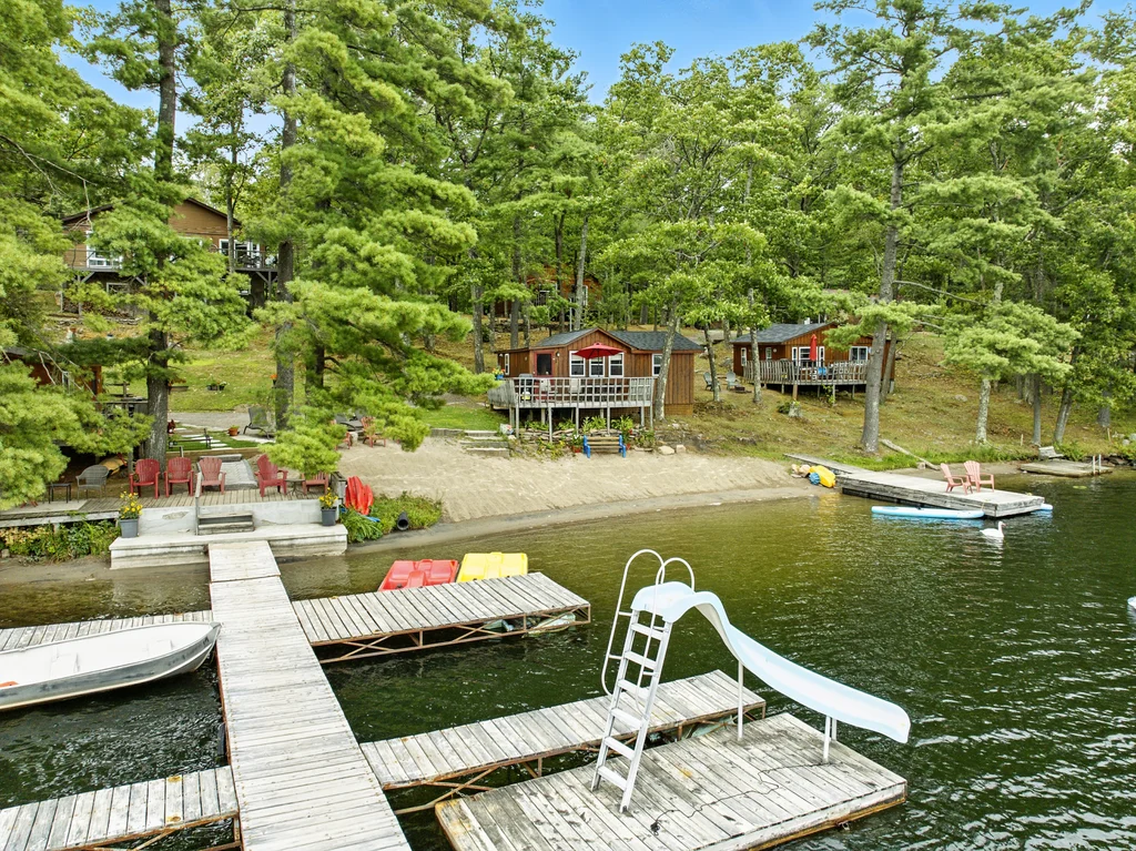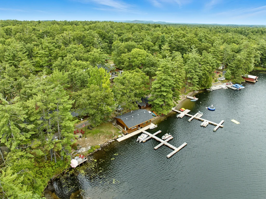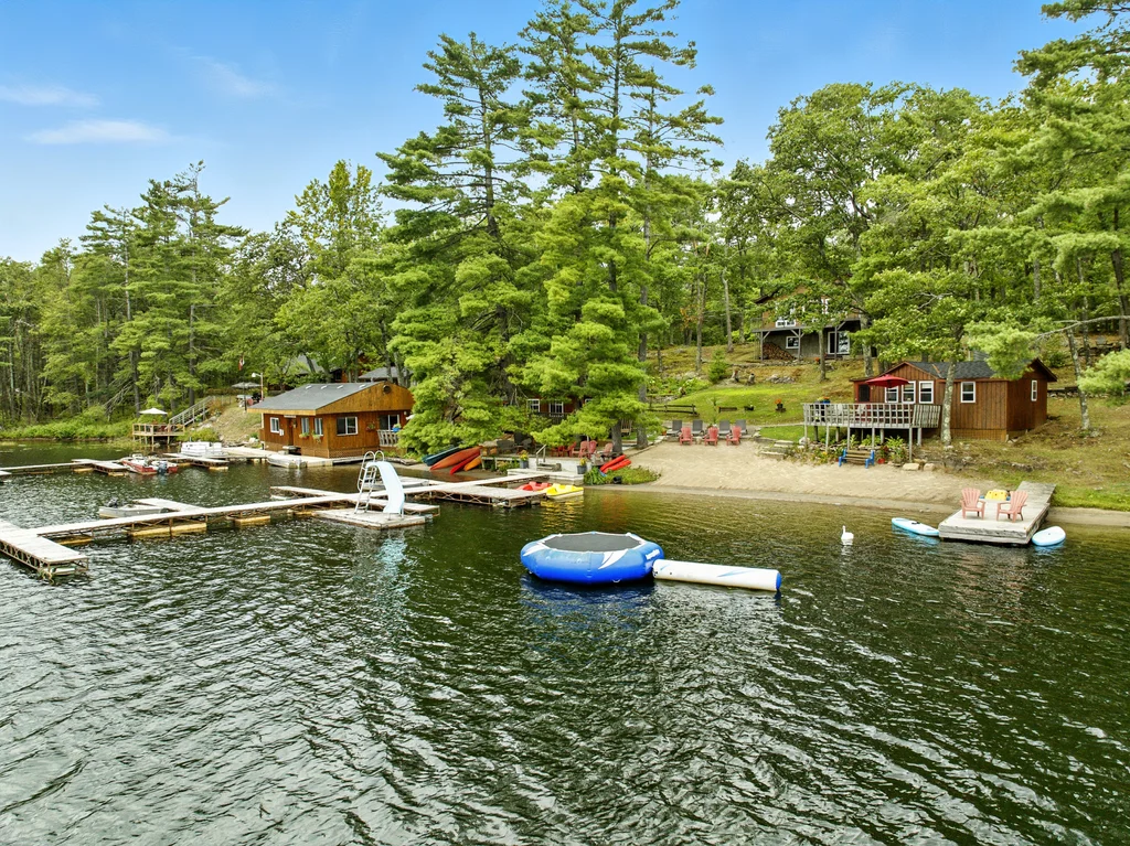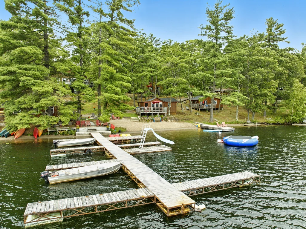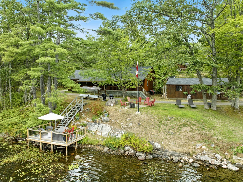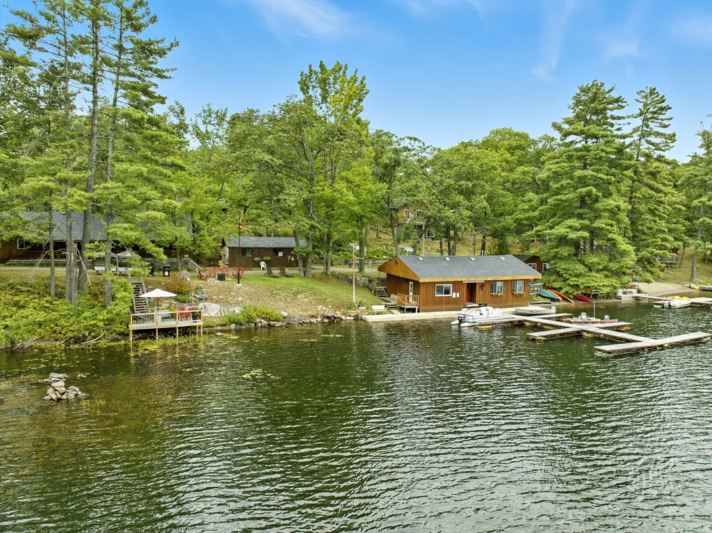 BLUE MOUNTAIN LODGE | LAKE KASSHABOG - This iconic landmark has been lovingly cared for and nurtured by the same family for the past 42 years. Offering 7 two bedroom house keeping cottages, a 1600 sq ft three bedroom primary residence, a restaurant with Liquor License, 20+ boat slip docking system, 2.4 acres, 3 trailer sites and 370 feet of some the best waterfront you will find. Blue Mountain Lodge is more than just a family resort, it is a lifestyle. With loyal, repeat clients, this resort is setup for the next owner to have a turnkey operation. Not interested in running a business? How about an amazing family compound. Pride of ownership is evident as you roam the well manicured property, showcasing a gorgeous beach with expansive lake views, lake side decking and flourishing gardens. Surrounded by snowmobile and ATV trails as well as endless acres of crown land often enjoyed by hunters, Blue Mountain Lodge offers unlimited untapped 4 season potential. Come see what you've been missing!
