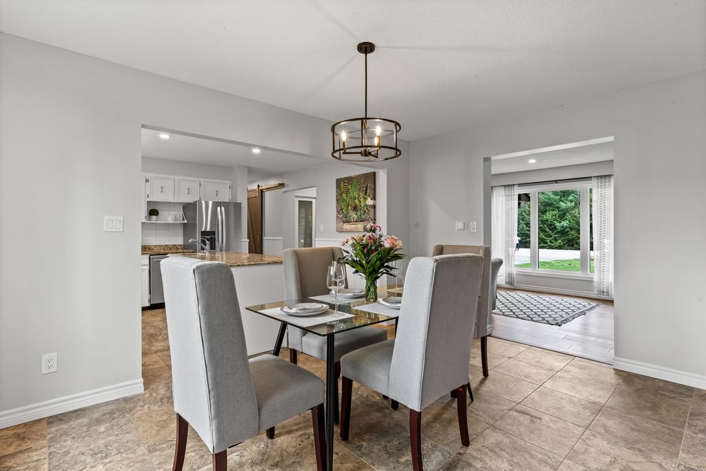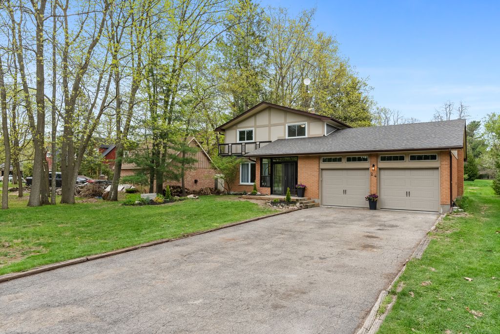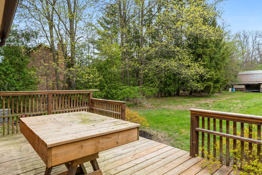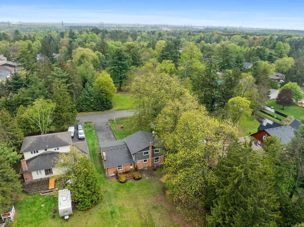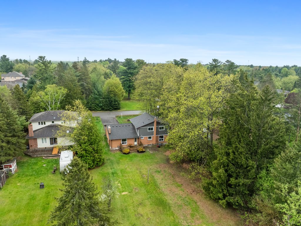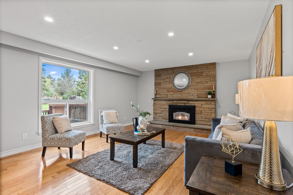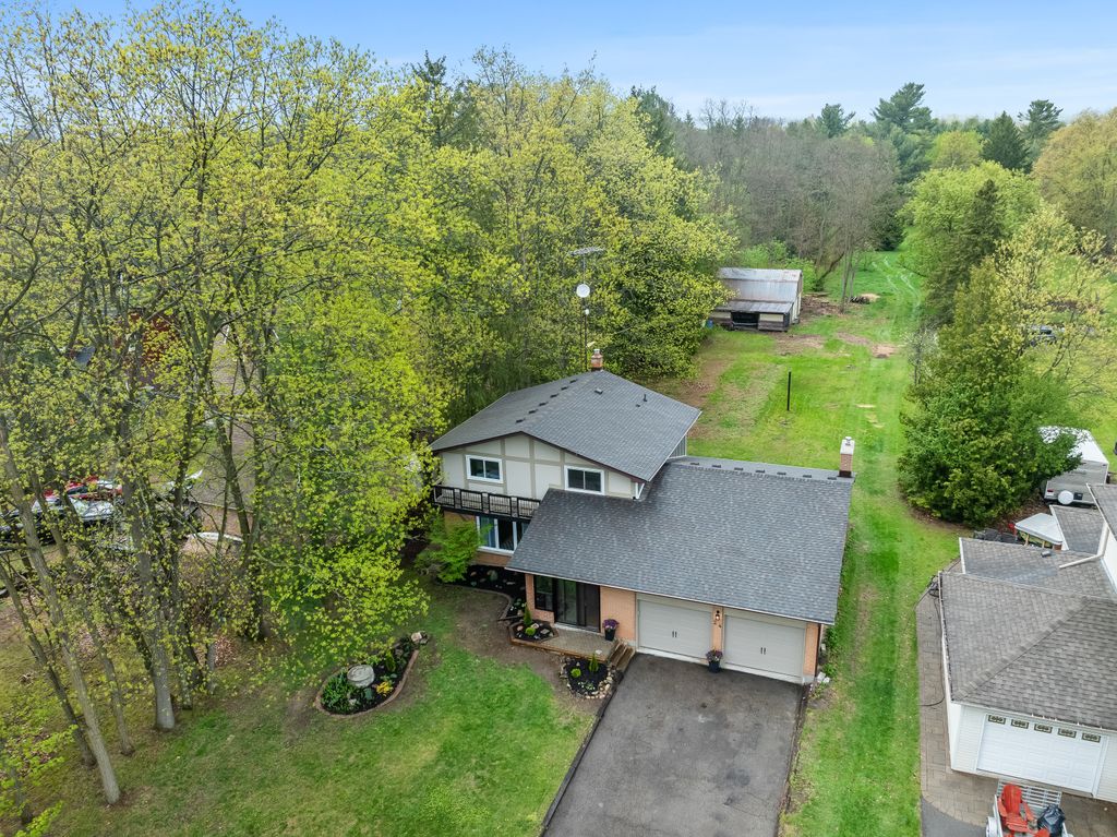 This is the one! If you're dreaming of country living without sacrificing city convenience, your search ends here. This charming 4-bedroom, 2-bathroom two-storey home is nestled on nearly an acre of land and offers the perfect blend of privacy, space, and location. Step into a sun-filled family room with gleaming hardwood floors and a large picture window that brings the outdoors in. The space flows seamlessly into a dining room with peaceful backyard views, ideal for hosting family meals or quiet dinners. The country-style kitchen features a bar seating area and overlooks the expansive yard perfect for enjoying your morning coffee or keeping an eye on the kids. Unwind in the separate cozy living room, complete with a fireplace, hardwood floors, and walk-out access to your backyard oasis. Whether you're entertaining guests or enjoying quiet nights in, this home has room for it all. The double-car garage with interior access adds both practicality and convenience, and there's plenty of room for multiple vehicles in the driveway. You'll also find a separate barn with electrical and an additional well, making it an ideal space for a workshop, hobby area, or extra storage. Just across the street, you'll find a park with a basketball court, and right next door is the Heber Down Conservation Area with trails waiting to be explored. The location couldn't be better, only five minutes from the 407 and 412, ten minutes from the 401, and just seven minutes from the brand-new community centre packed with recreation and activities. You're also close to shopping, schools, and the site of the future hospital. This is the perfect home for a growing family that wants space, nature, and the convenience of nearby amenities. Click on Multimedia for video, aerial views, floorplans, and photos!