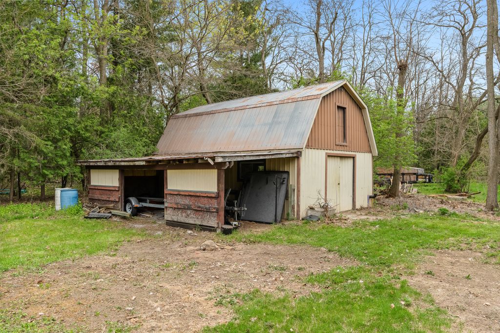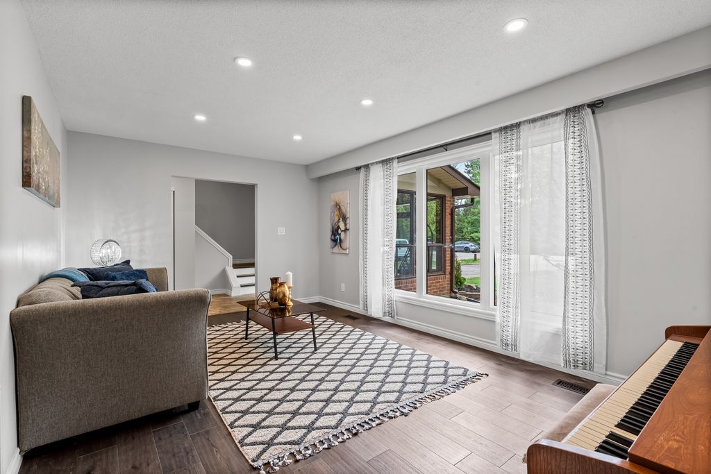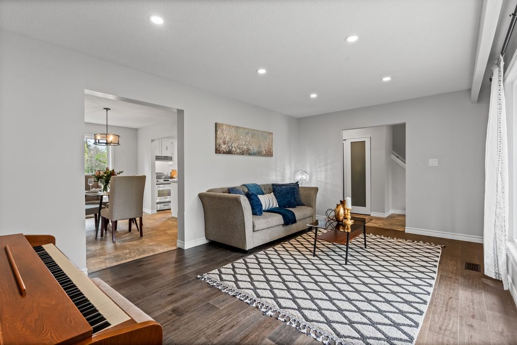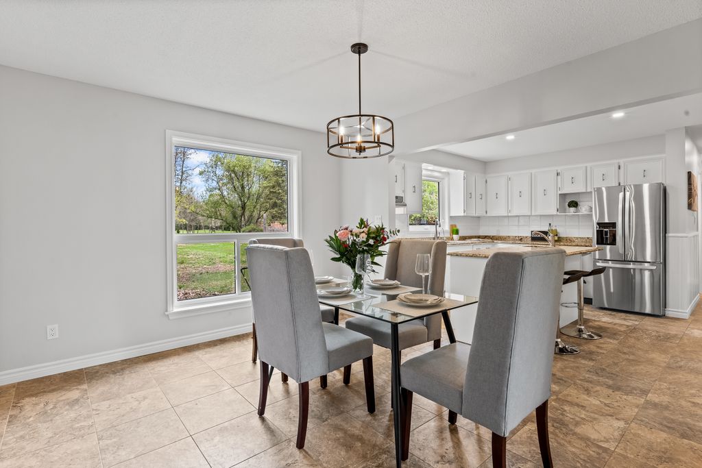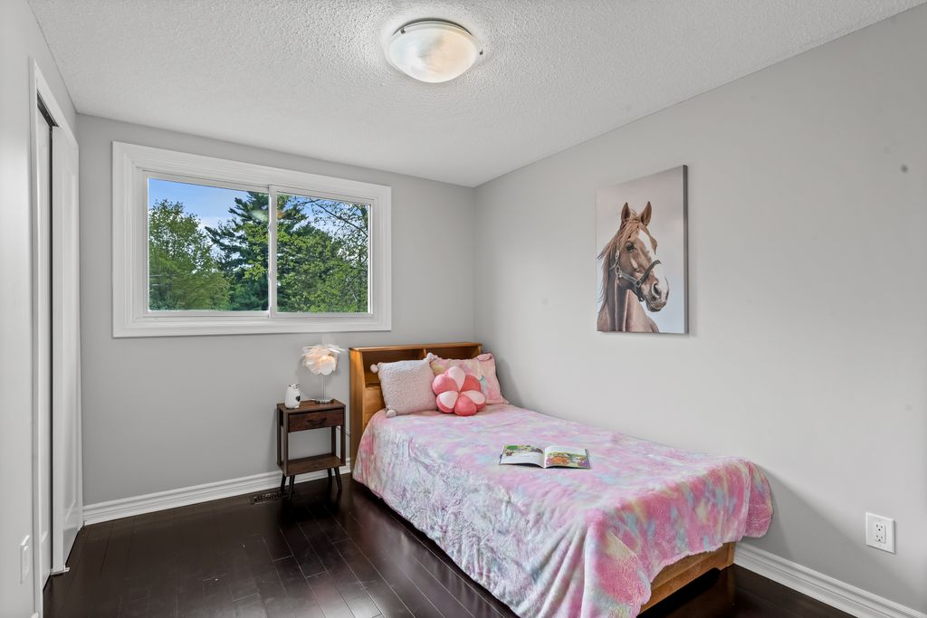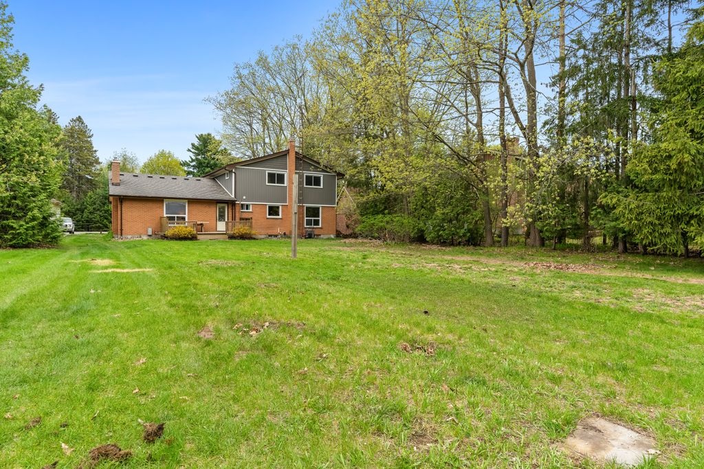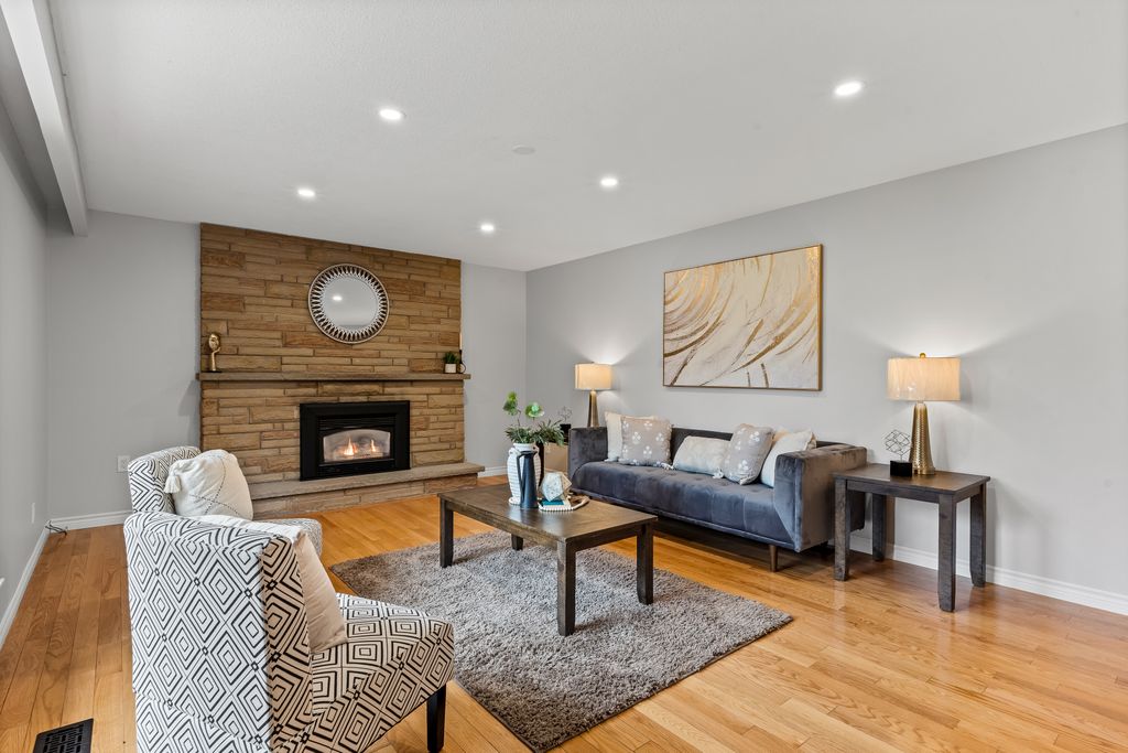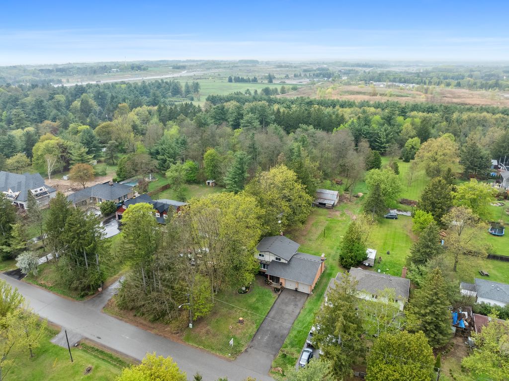 This is the one! If you're dreaming of country living without sacrificing city convenience, your search ends here. This charming 4-bedroom, 2-bathroom two-storey home is nestled on nearly an acre of land and offers the perfect blend of privacy, space, and location. Step into a sun-filled family room with gleaming hardwood floors and a large picture window that brings the outdoors in. The space flows seamlessly into a dining room with peaceful backyard views, ideal for hosting family meals or quiet dinners. The country-style kitchen features a bar seating area and overlooks the expansive yard perfect for enjoying your morning coffee or keeping an eye on the kids. Unwind in the separate cozy living room, complete with a fireplace, hardwood floors, and walk-out access to your backyard oasis. Whether you're entertaining guests or enjoying quiet nights in, this home has room for it all. The double-car garage with interior access adds both practicality and convenience, and there's plenty of room for multiple vehicles in the driveway. You'll also find a separate barn with electrical and an additional well, making it an ideal space for a workshop, hobby area, or extra storage. Just across the street, you'll find a park with a basketball court, and right next door is the Heber Down Conservation Area with trails waiting to be explored. The location couldn't be better, only five minutes from the 407 and 412, ten minutes from the 401, and just seven minutes from the brand-new community centre packed with recreation and activities. You're also close to shopping, schools, and the site of the future hospital. This is the perfect home for a growing family that wants space, nature, and the convenience of nearby amenities. Click on Multimedia for video, aerial views, floorplans, and photos!