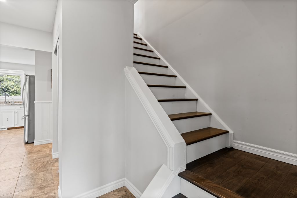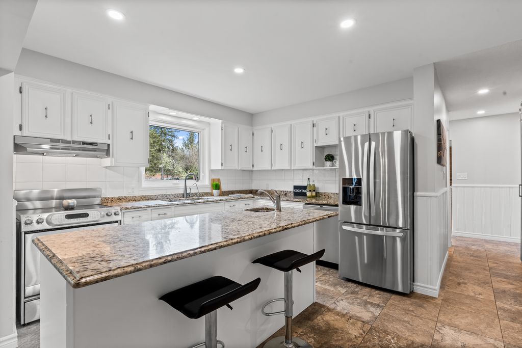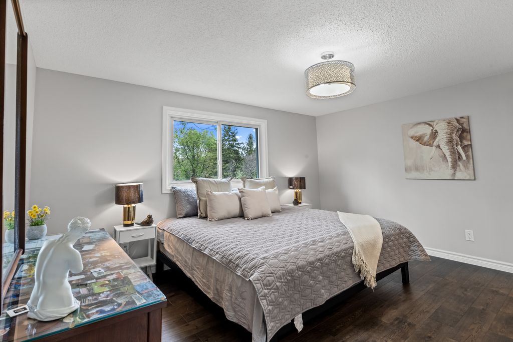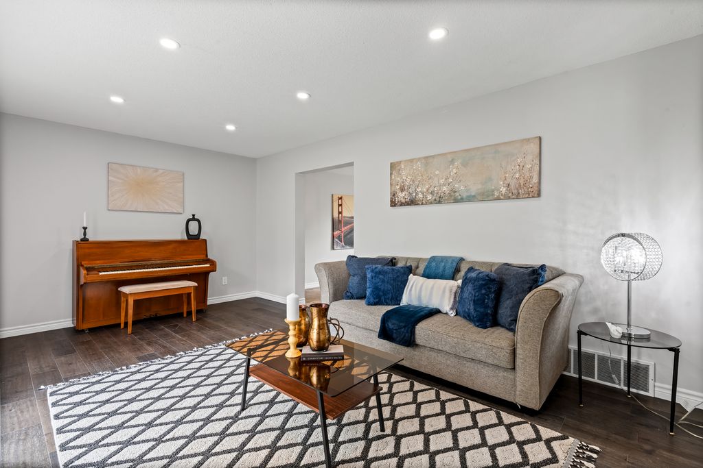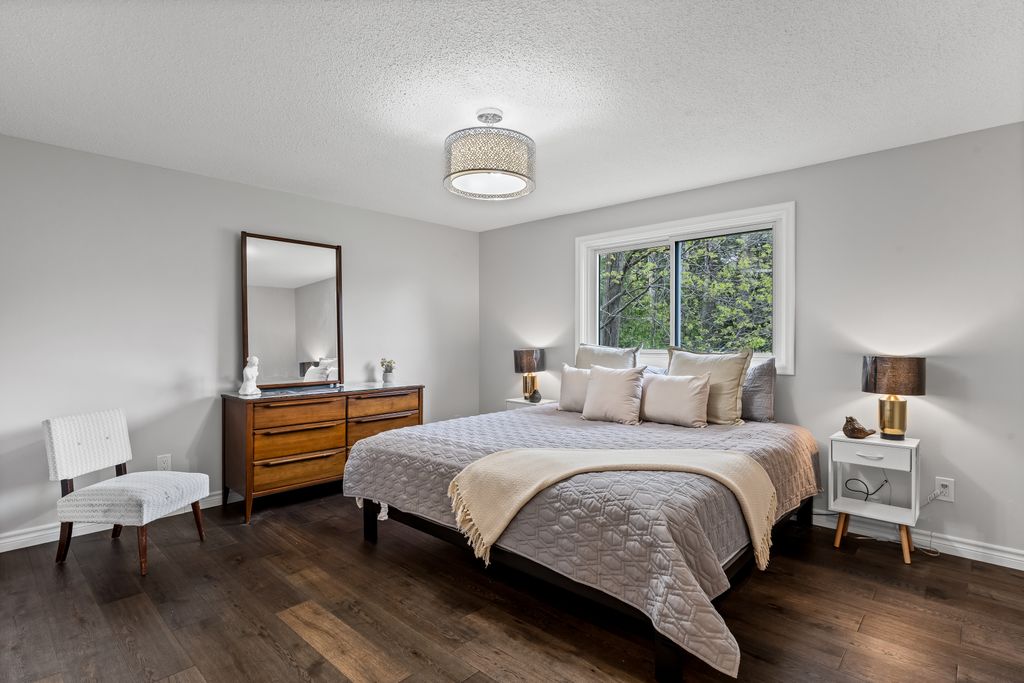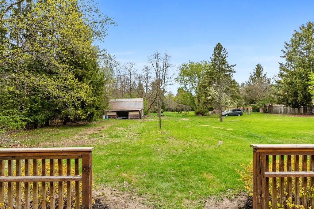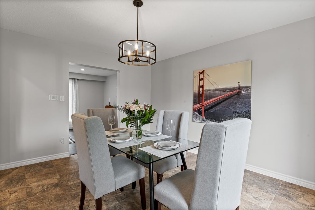 This is the one! If you're dreaming of country living without sacrificing city convenience, your search ends here. This charming 4-bedroom, 2-bathroom two-storey home is nestled on nearly an acre of land and offers the perfect blend of privacy, space, and location. Step into a sun-filled family room with gleaming hardwood floors and a large picture window that brings the outdoors in. The space flows seamlessly into a dining room with peaceful backyard views, ideal for hosting family meals or quiet dinners. The country-style kitchen features a bar seating area and overlooks the expansive yard perfect for enjoying your morning coffee or keeping an eye on the kids. Unwind in the separate cozy living room, complete with a fireplace, hardwood floors, and walk-out access to your backyard oasis. Whether you're entertaining guests or enjoying quiet nights in, this home has room for it all. The double-car garage with interior access adds both practicality and convenience, and there's plenty of room for multiple vehicles in the driveway. You'll also find a separate barn with electrical and an additional well, making it an ideal space for a workshop, hobby area, or extra storage. Just across the street, you'll find a park with a basketball court, and right next door is the Heber Down Conservation Area with trails waiting to be explored. The location couldn't be better, only five minutes from the 407 and 412, ten minutes from the 401, and just seven minutes from the brand-new community centre packed with recreation and activities. You're also close to shopping, schools, and the site of the future hospital. This is the perfect home for a growing family that wants space, nature, and the convenience of nearby amenities. Click on Multimedia for video, aerial views, floorplans, and photos!