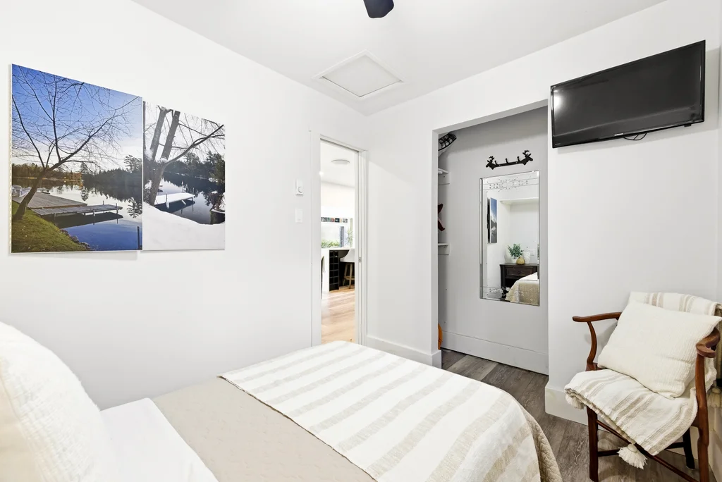 Completely renovated four-season cottage with a detached bunkie on the pristine shores of Clear Lake. Situated on a municipally maintained road, this easily accessible three-bedroom retreat offers the perfect blend of comfort and simplicity for effortless waterfront living. The thoughtfully designed interior features a spacious primary bedroom with a walk-in closet, custom queen-sized bed with built-in storage, and matching end tables. The brand-new kitchen is equipped with quartz countertops and five newer stainless steel appliances, while the updated bathroom showcases a sleek glass walk-in shower and heated floors. Extensive upgrades include but are not limited to new flooring, hardboard siding, improved insulation, updated wiring and plumbing, and an energy-efficient heat pump with three heads for year-round heating and cooling. Step outside to enjoy the outdoor kitchen complete with a Weber BBQ and Green Egg smoker-ideal for entertaining. The property is being offered fully turnkey, including over $30,000 in furnishings, appliances, TVs, speakers, and sound systems-just bring your clothes and start enjoying. The detached bunkie adds valuable space for guests, complete with its own three-piece bathroom. Generous decking, private docking, and deep, clean waterfront make this an exceptional setting for swimming, boating, and relaxing. Conveniently located just a short walk to amenities at Young's Point General Store.