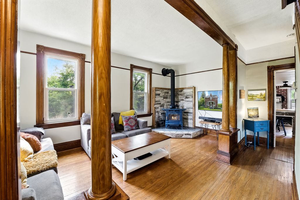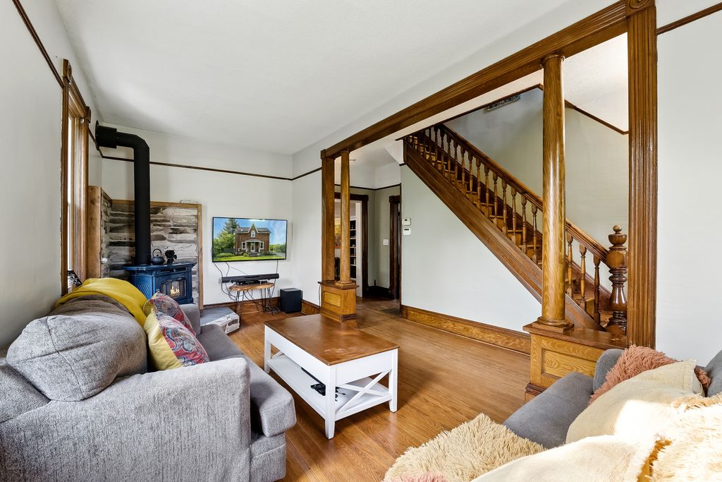 Nestled on a quiet dead-end street in the heart of Stirling's countryside, this picturesque century home offers timeless curb appeal, character-rich original features, and a lifestyle many dream of. Set on a very manageable half-acre lot, the home boasts 4 bedrooms, 2 bathrooms, and a cozy fireplace perfect for relaxed evenings. A classic two-story barn adds charm and endless potential ideal for a workshop, storage, hobby space, or future creative projects. With privacy and no through traffic, you'll enjoy peace and seclusion while being perfectly positioned for adventure anytime of the year. Located at the junction of the Trans-Canada Trail and the Hastings Heritage Trail, this property is a recreational riders dream hop on your ATV, snowmobile, or bike and explore Ontario's natural heritage right out of your own driveway. Whether you're seeking tranquility, weekend adventures, or a forever home with soul, this one-of-a-kind rural retreat is ready to welcome you.