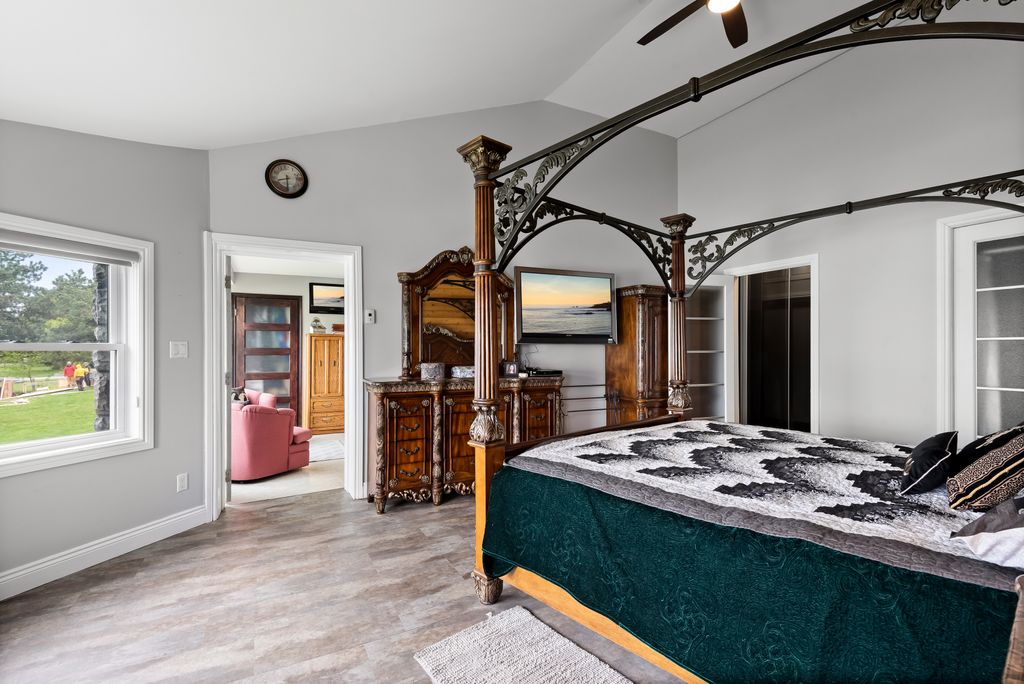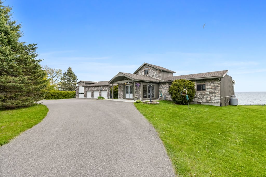 Experience unparalleled lakeside living with this exceptional waterfront property that sits on 1.84 acres and features its own private beach! A truly rare and one-of-a-kind opportunity! This custom-built bungalow showcases timeless craftsmanship and was designed to maximize the stunning natural surroundings. Floor-to-ceiling windows span the entire southern exposure, flooding the home with natural light and offering breathtaking, unobstructed views of the sky and lake. Whether you're relaxing indoors or enjoying the private shoreline, every moment here is framed by beauty and tranquility.With approx. 2844 sqft of main floor living space enjoy spacious rooms and an incredible flow to meet all of your lifestyle needs. An additional loft area is perfect for storage or extended living. The walk-out basement features a fully equipped in-law suite, ideal for extended family or guest accommodations. Enjoy the best of both worlds with direct lake access for a refreshing swim or unwind in your private indoor water spa. Boasting picturesque curb appeal, the property features a grand circular driveway perfect for welcoming guests, along with a spacious four-car garage—including a dedicated bay designed to accommodate your RV. Zoned for both residential use and Bed & Breakfast operations, this property presents exciting opportunities for personal enjoyment and potential income. Whether you’re seeking a tranquil lakeside retreat, a place to entertain in style, or a turnkey B&B venture, this extraordinary waterfront haven is ready to exceed every expectation. Embrace the lifestyle you've always desired in this extraordinary Colborne estate, where every day feels like a vacation!