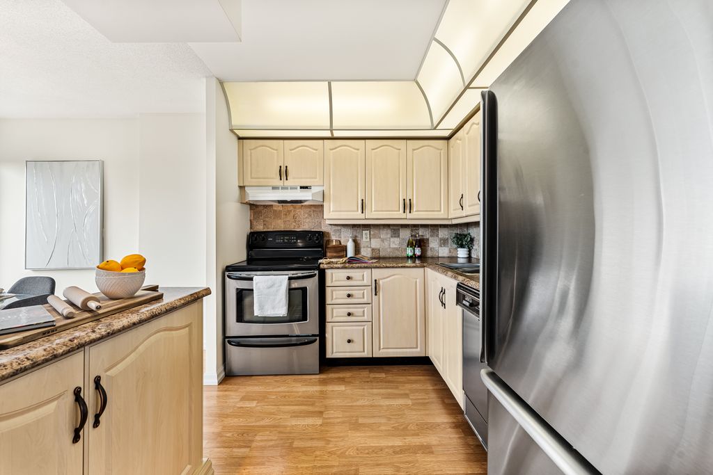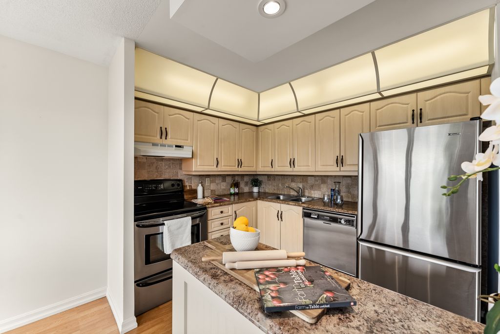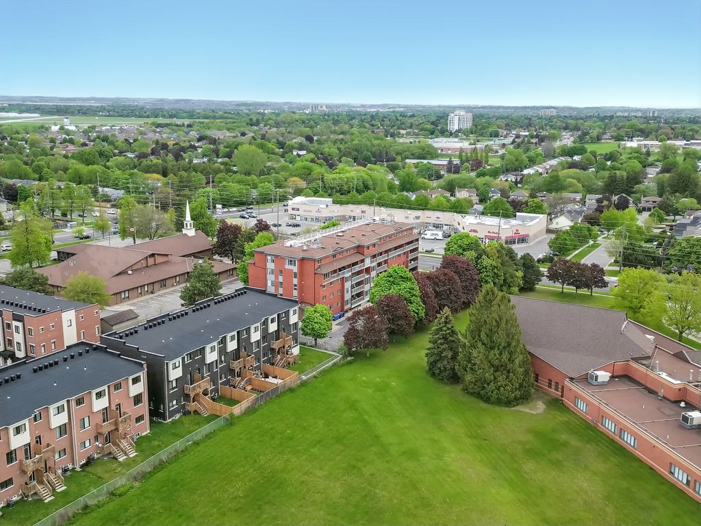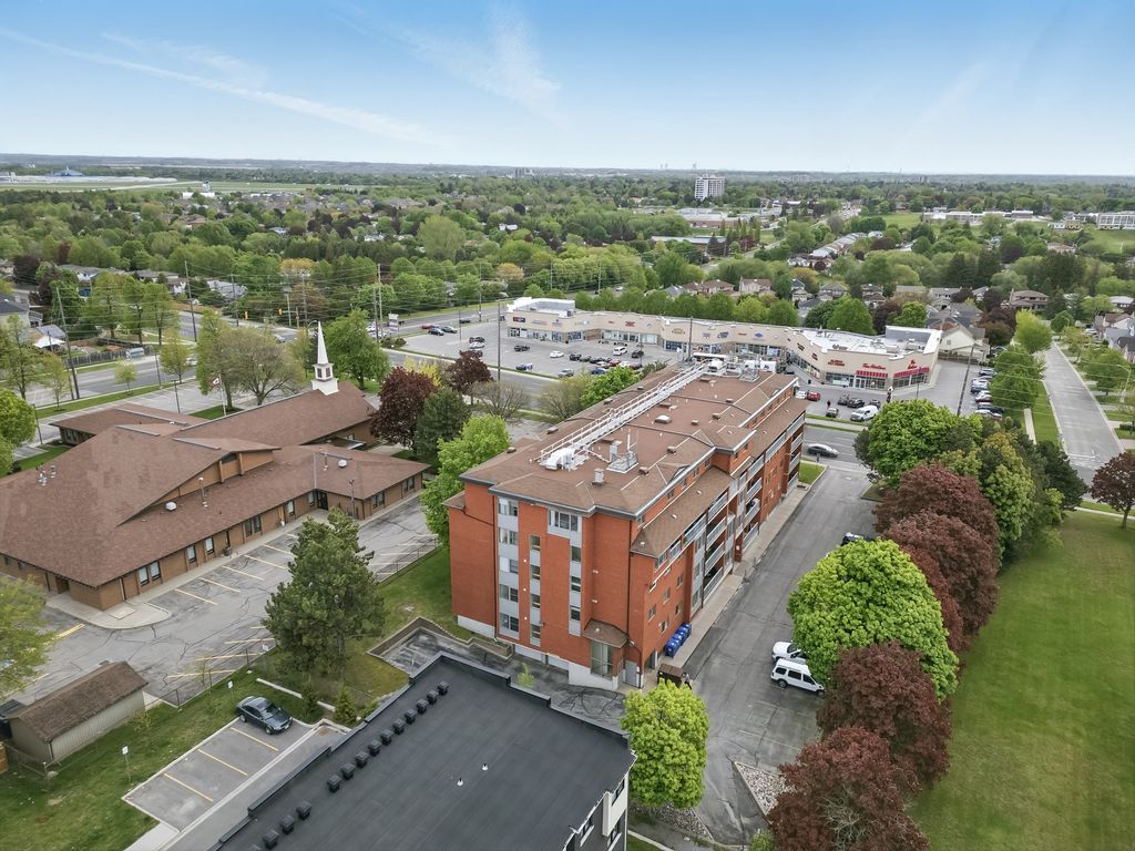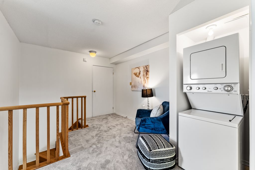 Welcome to Thornton Place - a quiet and mature building in a prime North Oshawa location. This rarely offered 2-storey corner penthouse unit provides comfort, convenience, a unique layout, and a private balcony featuring views to the southwest. The sunlit main level features a welcoming living room, a bright eat-in dining room featuring large windows, along with a full service kitchen that includes modern appliances. Upstairs, you'll find two spacious bedrooms each with double closets and large windows. The full 4-piece bathroom along with the ease of stacked ensuite laundry only a few steps away. Perfect for individuals, couples, or small families seeking functionality without all the bells and whistles. Enjoy the traditional amenities of condo living with elevator service, one (1) underground parking space. This well-kept building features an accessibility lift in the lobby, a party/meeting room, and plenty of visitor parking. Located just minutes from the 401, places of worship, parks, public transit, shopping, and other everyday needs. Condo Fee of $720.30 per month covers building maintenance and insurance, cable TV package, water, and more.