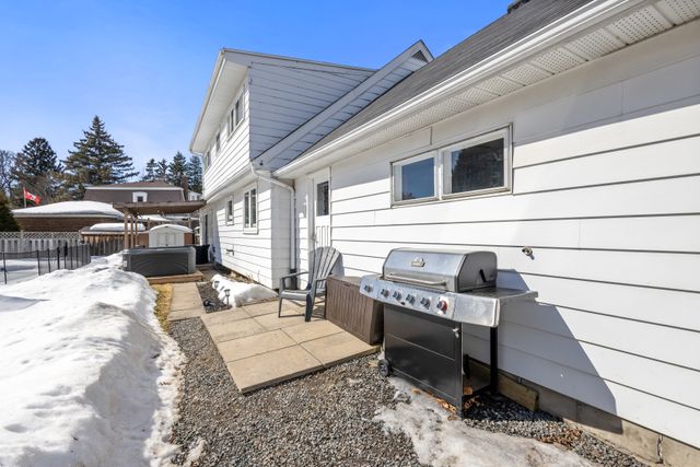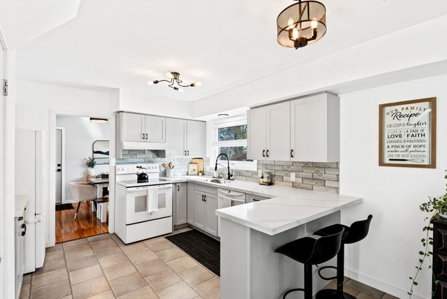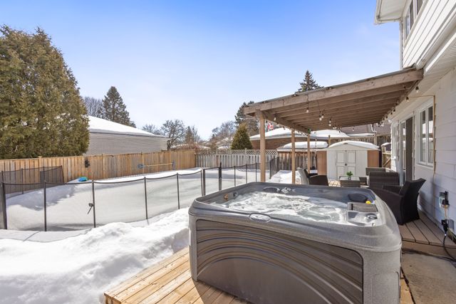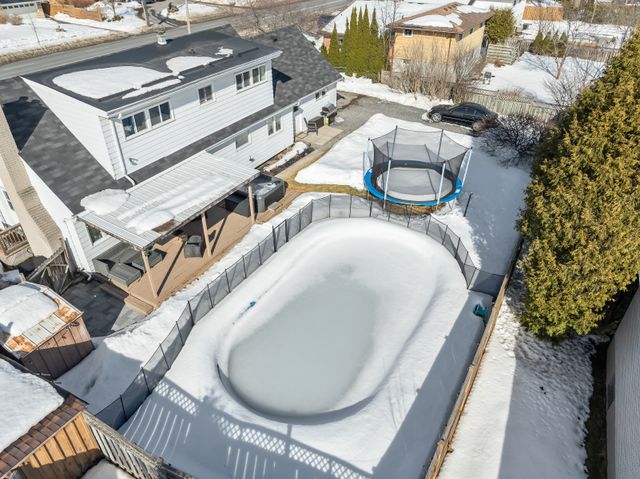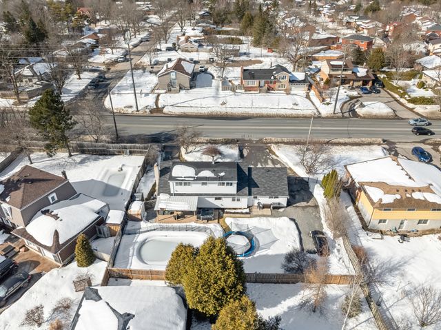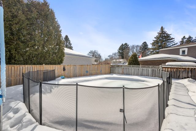 Welcome to this exquisite 3 bedroom plus den, 3 bathroom home, perfectly situated in the highly sought after West End of Peterborough. The open concept living and dining room showcases beautiful hardwood floors and an abundance of natural light that flows seamlessly throughout. Bright eat-in kitchen features elegant quartz countertops and a walk-in pantry. Step down to the sunken family room, complete with a cozy gas fireplace, offering the perfect space to spend time with family. Flow seamlessly outside through the family room sliding doors to discover your own private oasis. An entertainers paradise complete with a fully fenced backyard, an inground pool, and a covered back deck, perfect for summer gatherings. The main floor is equipped with a convenient guest room and a 3-piece bathroom with main floor laundry. Upstairs, the expansive primary bedroom features a modern statement wall, dual closets and a dedicated vanity/dressing room. The second spacious bedroom features a walk-in closet with a barn sliding door and a 3-piece bathroom completes the upper level. The lower level presents an opportunity with the potential for an in-law suite. Complete with a side door entrance accessing the lower level stairs. Includes a kitchenette, den, an additional 3-piece bathroom and laundry room with plenty of storage space. This home offers a double-car attached garage, and a U-shaped driveway, providing parking for up to 10 vehicles. This home is as practical as it is beautiful. Ideally located near top-rated schools, local amenities, scenic trails, and parks. This property offers the perfect blend of comfort, convenience, and family-friendly living.