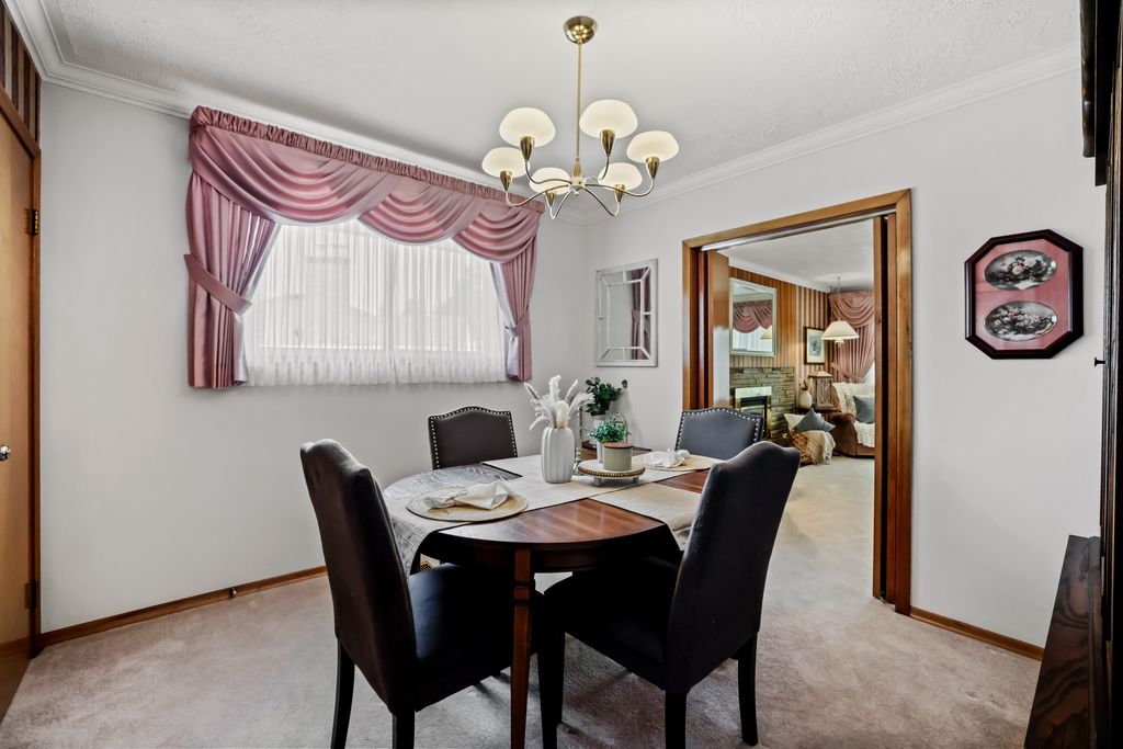 Charming 3 Bedroom Home in Prime North End Location. Welcome to this lovely bungalow tucked away on a quiet dead-end street in the sought after North End. Lovingly cared for by the same family for 47 years, this home offers comfort, space, and curb appeal with its manicured gardens and timeless angel stone exterior. Step inside to a spacious living room centered around a cozy gas fireplace, perfect for relaxing evenings. A separate formal dining room provides a great space for entertaining. The bright, eat-in kitchen was significantly expanded with a rear addition in 1999, which also includes a heated, four-season sunroom, ideal for year-round enjoyment. The main floor features three comfortable bedrooms and a 4 piece bathroom complete with a Jacuzzi tub. Downstairs, the fully finished basement offers a large rec room, a den with wall to-wall storage, a dedicated craft room, a generous laundry area, and a 3 piece bathroom, plenty of room for the whole family to spread out. Outside, enjoy the fully fenced backyard that backs directly onto Highland Heights Elementary School. No rear neighbours! A single attached garage and proximity to all major amenities make this home as practical as it is charming. A rare find in a quiet, family-friendly neighbourhood. Don't miss your opportunity to make this home your own.